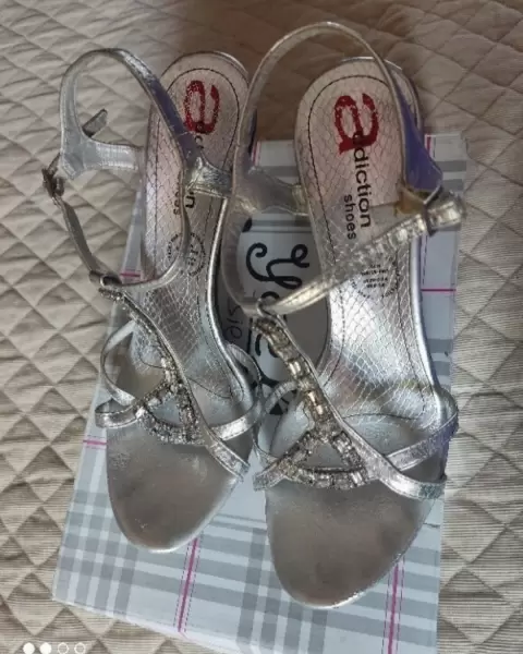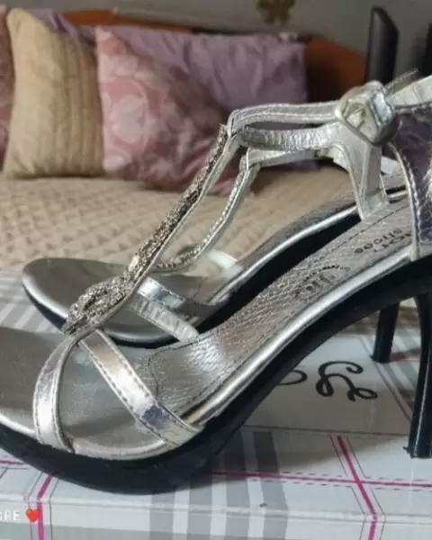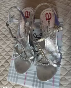 Zapatillas plateadas #25 altura de tacon 8 cm una sola puesta excelente estado