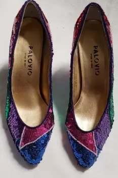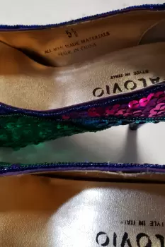 Zapatilla de lentejuela. el Numero de la zapatilla real es del 23 su pie tiene que estar delgado para que le entre. ya que el zapato no da de si.