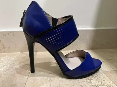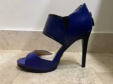 Zapatilla de tacón 10 cm azul negro. Zapatilla azul / negro nuevas para estrenar con etiqueta y caja original con garantía talla 5.5 sin detalles.