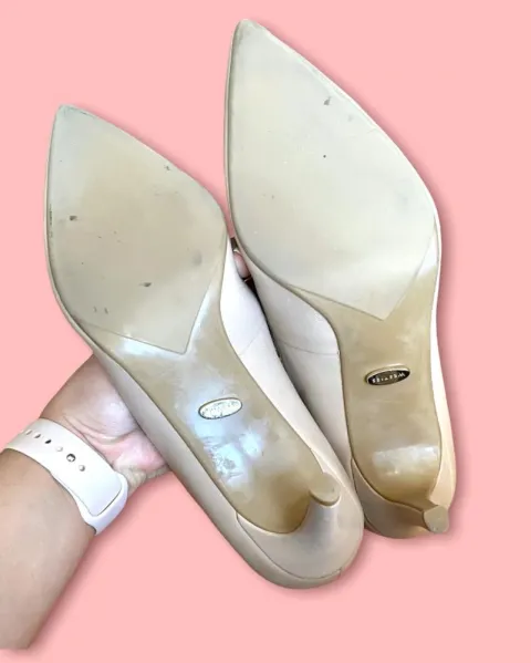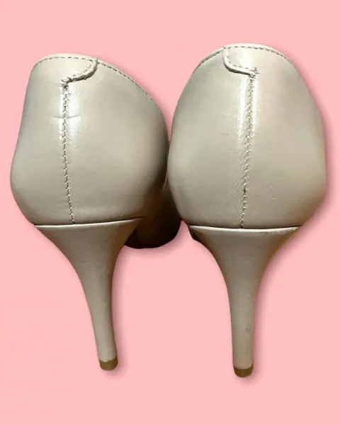 Zapatilla Nine West color nude.Puesto una vez, como nuevos, pequeño detalle en tacón derecho (se muestra en fotos) por estar guardados, no afecta su uso, poco visible.Talla 4.5 mx, tacón 8 cm