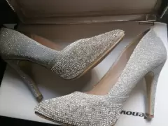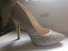 Zapatilla diamantada. Zapatilla tacon 10 cm, para evento social. Una sola puesta corte, forro y Suela sintética talla 4