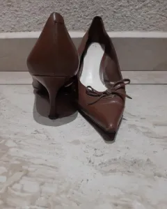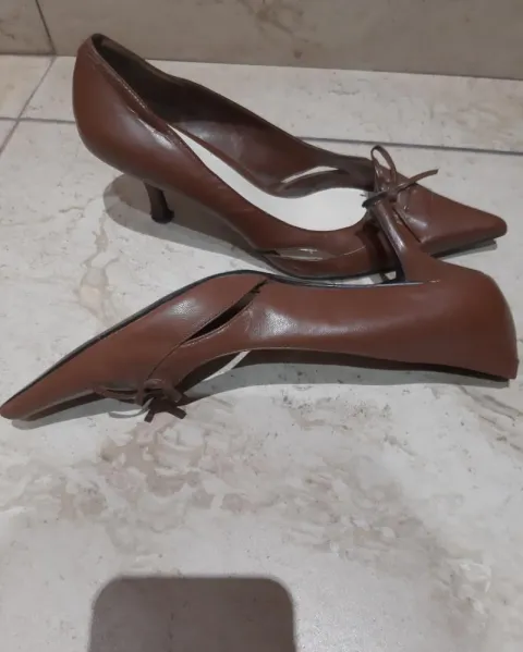 Hermosa zapatilla color marron, con tacon numero 5, muy comodas, con una pequeña avertura a sus costados, y un moño en la parte de arriba
