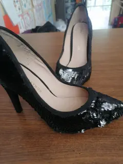Zapatilla lentejuela reverdi. Zapatilla negros de lentejuela reversible negro con plateado nuevas hermosas cómodas #4
