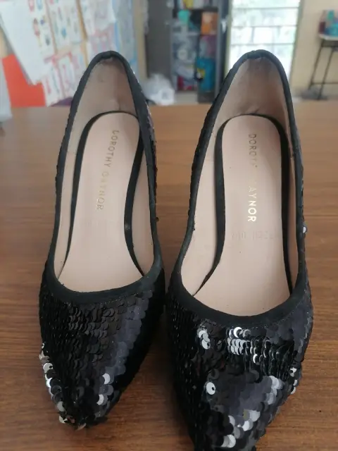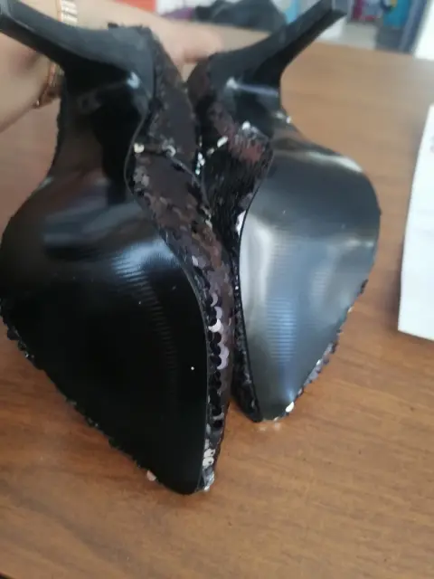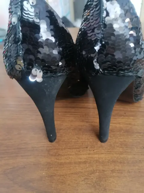 Zapatilla negros de lentejuela reversible negro con plateado nuevas hermosas cómodas #4