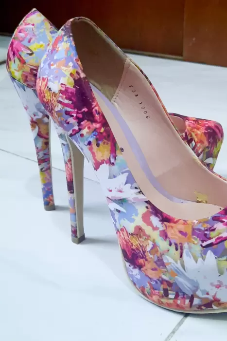 Zapatilla multicolor. Zapatilla multicolor en excelentes condiciones y una sola puesta; con plástico en la parte de la suela.