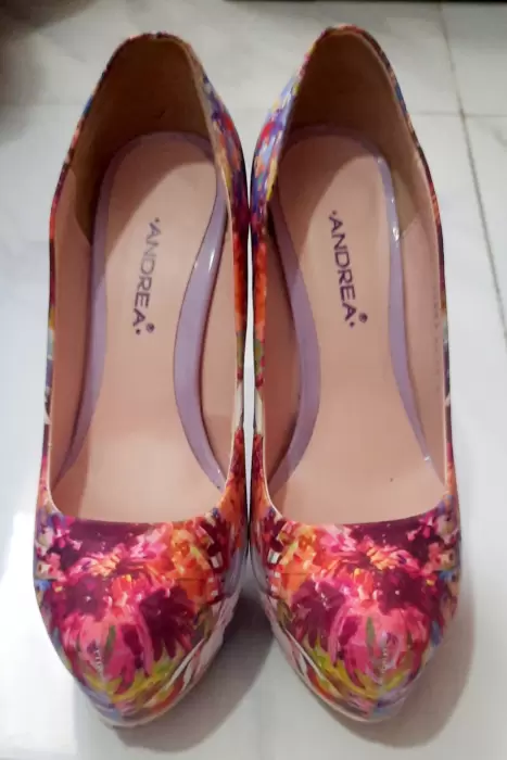 Zapatilla multicolor en excelentes condiciones y una sola puesta; con plástico en la parte de la suela.