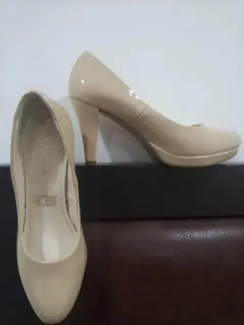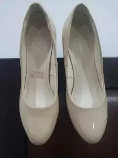 Zapatilla de charol alta en color nude, talla 5.5, altura 8.5 cms. 2 puestas, muy lindas!
