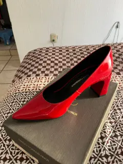 Zapatilla nueva. Zapatilla nueva Diego Torreblanca, charol rojo sin detalles, tacón cómodo, número 5