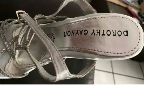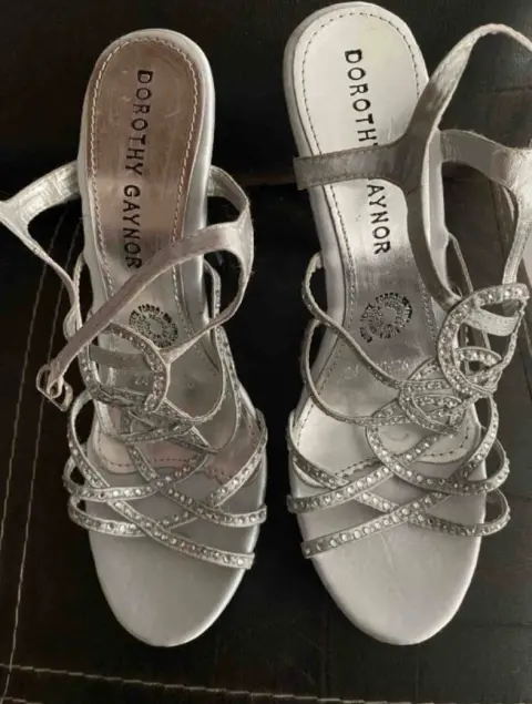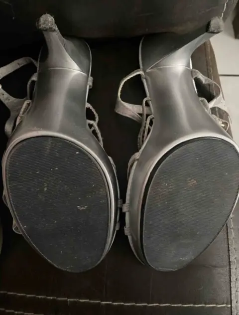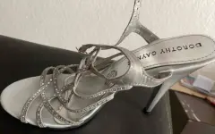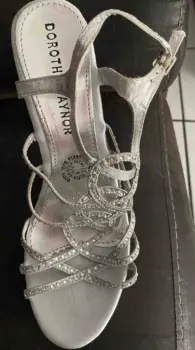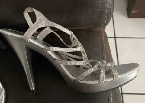 Zapatilla plateada Tacón delgado Se uso una vez Talla 4