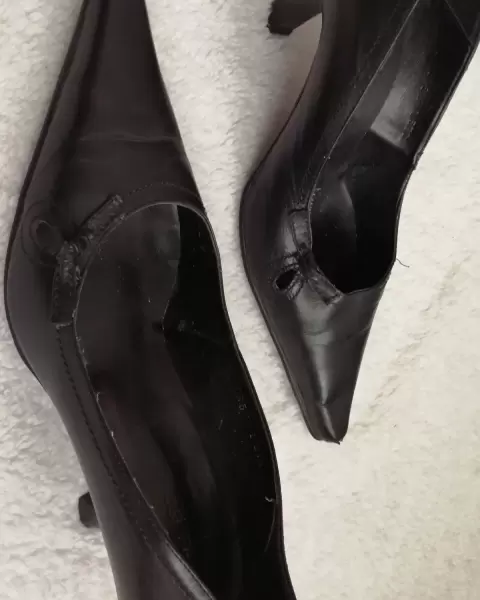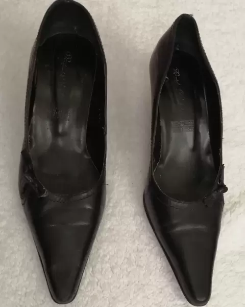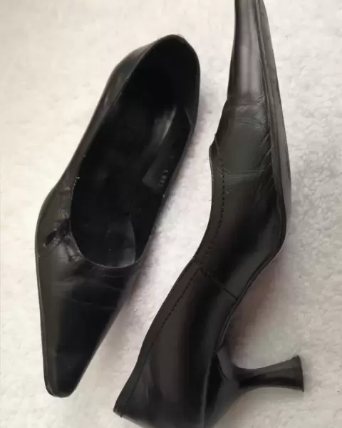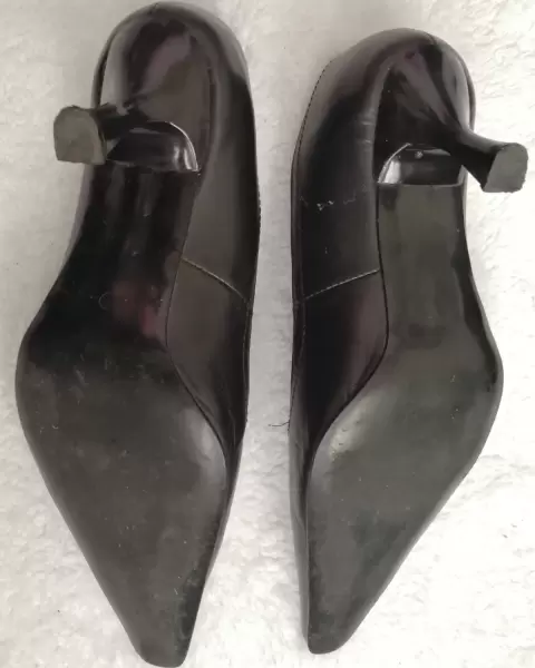 Zapatilla puntal negra. Zapatilla de Piel color negro, tacón de 6cm cómodo, diseño puntal con adorno de moñito lateral. Mexicano Número #26.5cm. Es de 2do uso pero en perfecto estado, checa las fotos. Cualquier dellate Pregúntame o visita mi closet para más modelos y númeración. Aplica mi código y tu primer compra en la App tiene descuento.