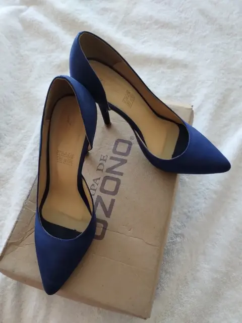 Zapatilla stiletto azul electrico talla 25 altura tacón de 10 CM solo dos puestas en buen estado caja original