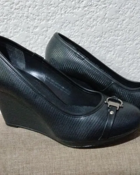 Zapatilla tacón de puente. Zapatilla tacon de puente, marca Flexi, número 6 1/2, corte vacuno, forro sintético, suela sintética, plantilla cerdo, alto de tacon 9 cm, tiene pequeños detalles poco visibles en el tacon del pie izquierdo.