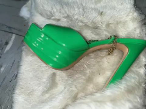 Zapatilla verde abierta. Zapatilla abierta con plataforma de pulsera de cadena, color verde, numero7 mexicano, totalmente nuevas.