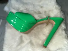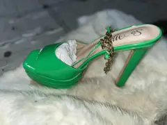 Zapatilla abierta con plataforma de pulsera de cadena, color verde, numero7 mexicano, totalmente nuevas.