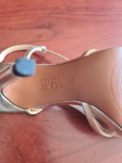 ZAPATILLA ZARA DORADO MUY TENUE. ZAPATILLA ZARA DE UN DORADO MUY TENUE, TACON AGUJA DEL NO. 10 , SIENTO QUE ESTAN REDUCIDAS A UNA TALLA 2.5 QUEDAN PERFECTAS Y A UNA TALLA 3 BIEN