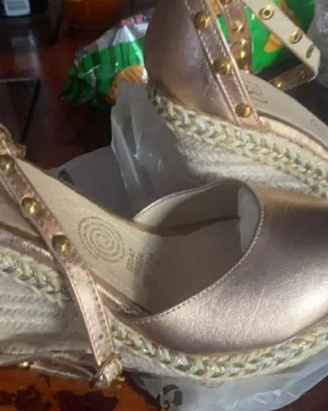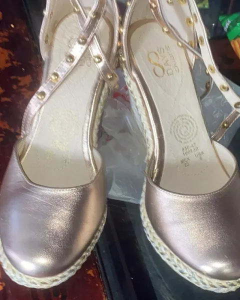 Bonitas zapatillas de plataforma color entre dorado y plata tacón entre 8 a 10 cm muy bonitos