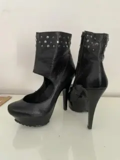 Zapatillas nuevas color negro con estoperoles en el tobillo , piel vacuno