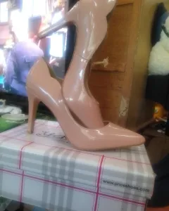 Zapatillas. Zapatillas de 9.5 centímetros de alto color nude en charol