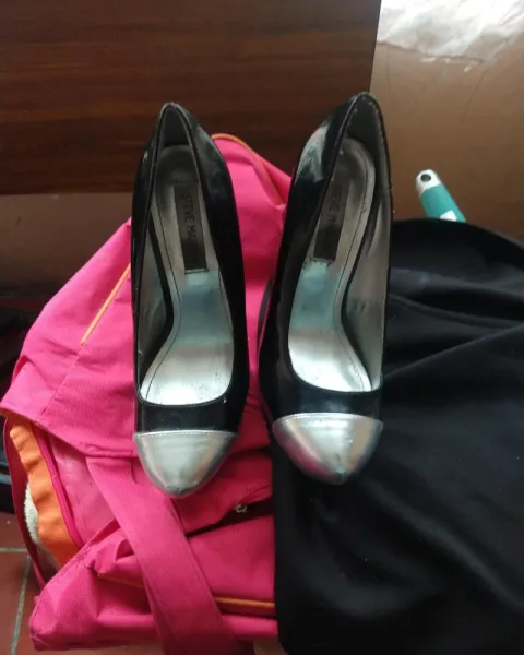 Zapatillas colo Blanco y negro #4 , tacon delgado, muy cómodas