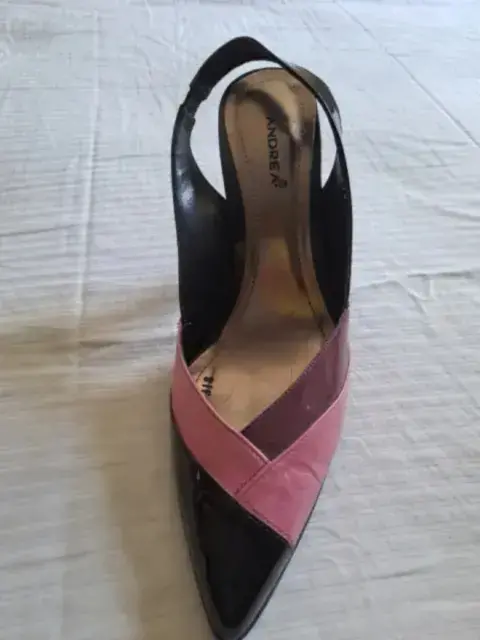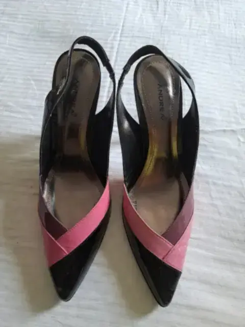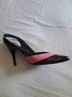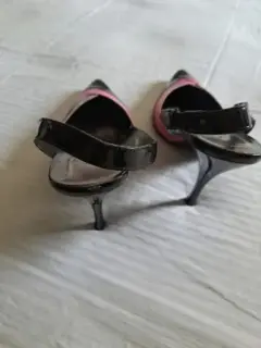 Zapatillas negras de charol, con detalle de color rosa y morado enfrente, tiene tacón de aguja, una sola puesta, tiene la plantilla en perfecto estado y la suela también, un ligero detalle en la parte del tacón, pero están en buen estado.