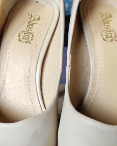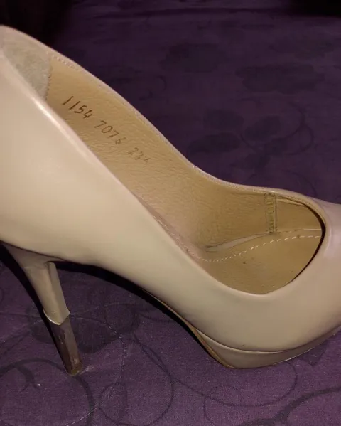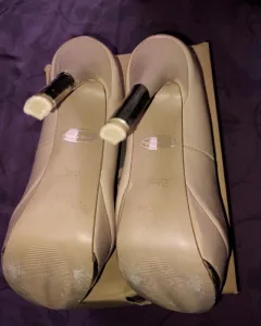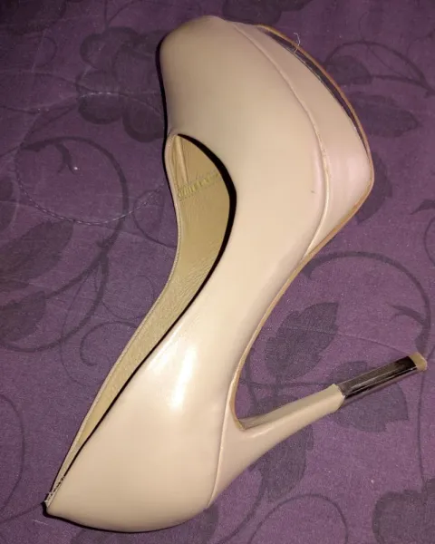Hermosas zapatillas en tono nude, el tacón mide 12.5 cm de alto solo se usaron 1/2 hora para sesión de fotos, se ven muy elegantes, tiene detalle plateado en la parte baja del tacón.