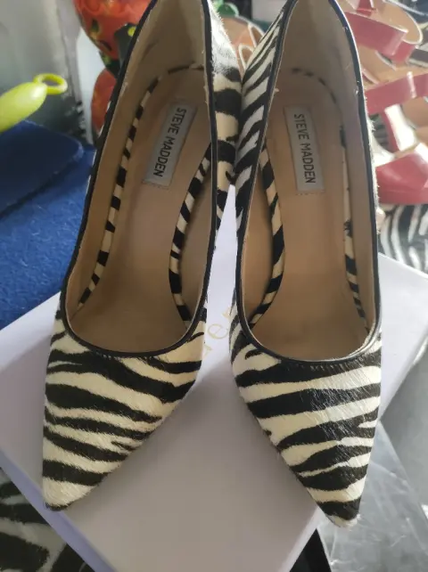 Steve Madden piel cordero , diseño animal print cebra con su cajita , tacon de aguja 10 CM .