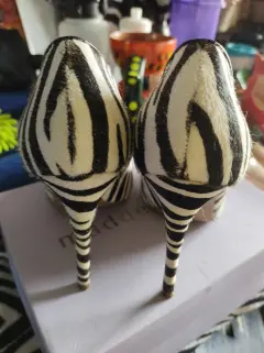 Zapatillas animal print. Steve Madden piel cordero , diseño animal print cebra con su cajita , tacon de aguja 10 CM .