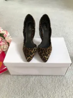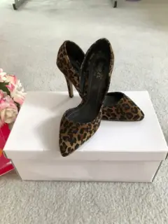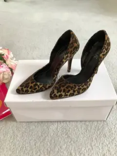 Preciosass zapatillas animal print, descubiertas de un lado, alto de tacón 10 cm. Prácticamente Nuevas, solo se usaron para una sesión de fotos!