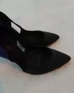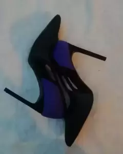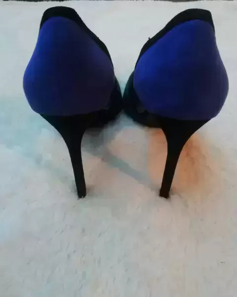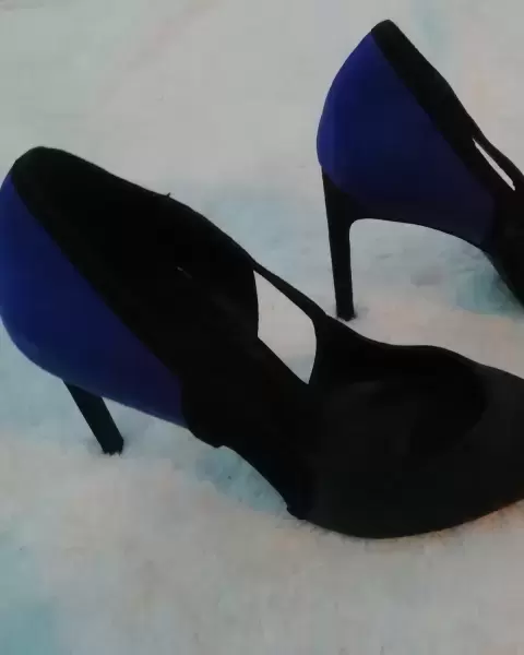 Hermosas zapatillas en punta bicolor (negro/azul) super elegantes. Tacón delgado y suela antiderrapante.