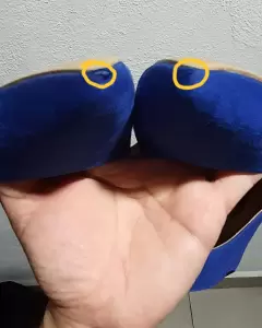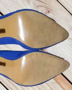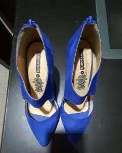Comodas y bonitas zapatillas en color azul rey, talla 5, tacon de 9cm, cierre trasero del mismo color, el unico detalle es que por dentro se esta pelando el forro, y la puntita de la tela esta un poco despegada, no afecta en nada su uso.