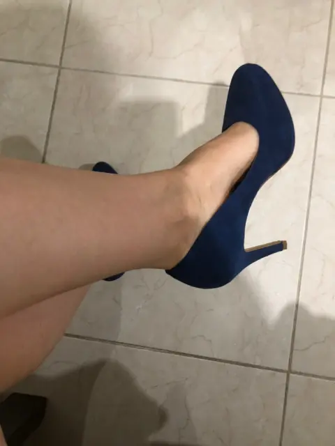 Zapatillas punta redonda color azul rey, tacón de 8 cm, sin plataforma. Seno nuevas