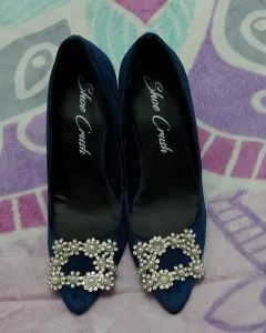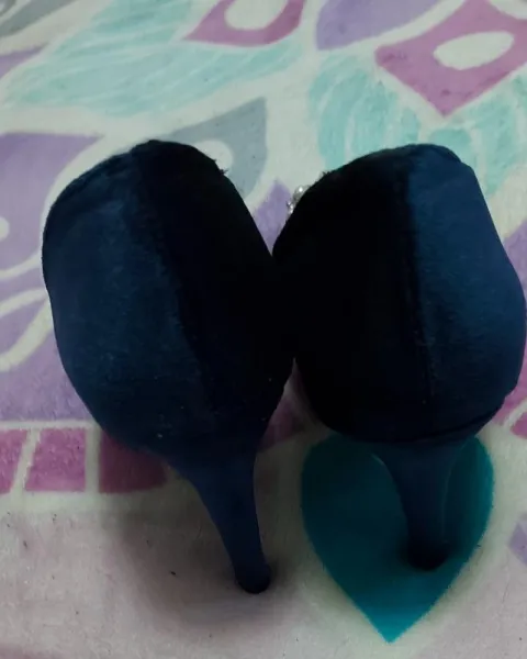 Zapatillas azules con perlas. Lindas zapatillas azules con perlas en la hebilla la falta una perla como se ve en la segunda foto los pedí por Internet y así llegaron