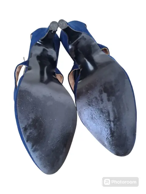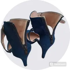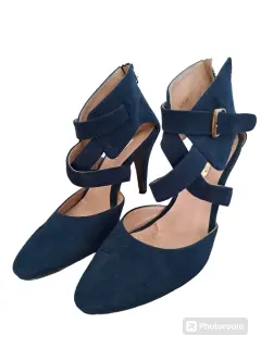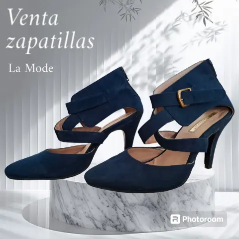 Zapatillas azules elegantes. Zapatillas de gamusa color azul, con cierre y hebilla, número 4 pero considero que también quedan bien a un pie #5 siempre y cuando sea delgado, se encuentran en buen estado se puede ver en las zuelas.