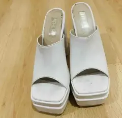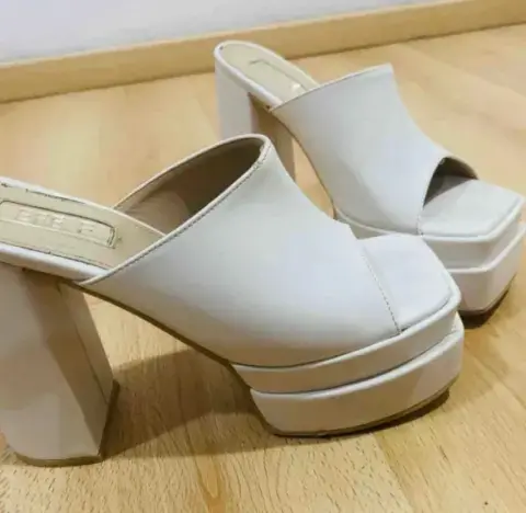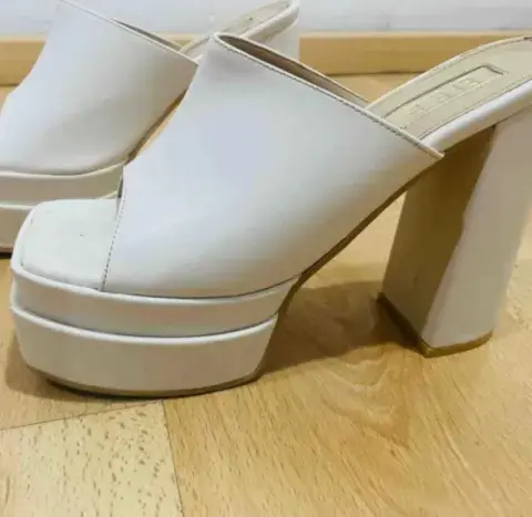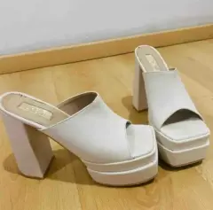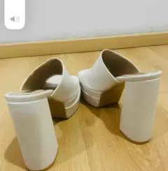 Zapatillas abiertas blancas con plataforma. Mide de plataforma 5 cms. Mide alto del tacón 14 cms.