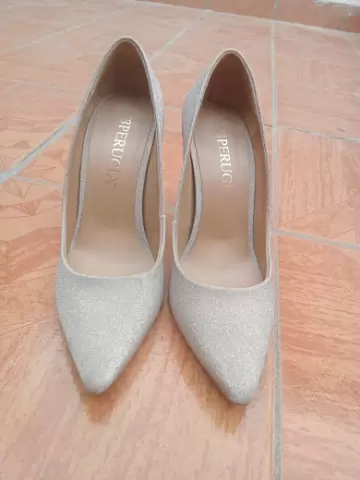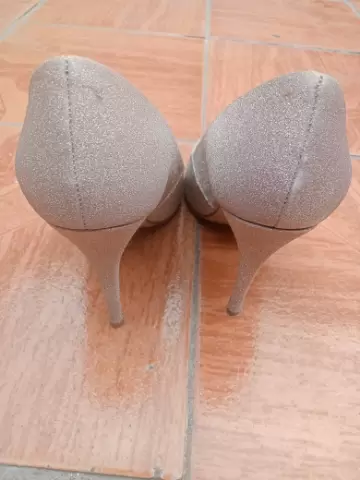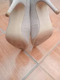 Hermosas zapatillas completamente brillosas, las usé solo como 3 horas para una cena por lo tanto se puede apreciar en las fotos que la suela no está desgastadaEl tacón mide 10 cm