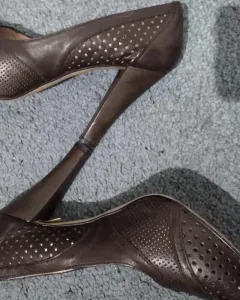 Zapatillas café Dos puestas. Zapatos color café abierto de parte de adelante, tacón número 10 , Talla de zapato # 4 1/2 BOniTOs marca Vogue