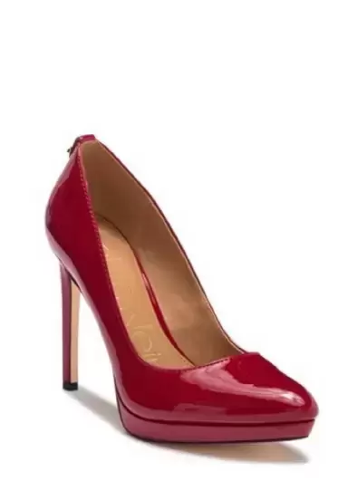 Zapatillas Calvin Klein. Zapatillas de tacon Calvin Klein,modelo SUSAN, tipo charol, tacon del numero 11cm con pequeña plataforma de 1cm. color rojo intenso. Tiene detalles de uso, pero que se pueden mandar a arreglar con un zapatero.Precios negociables, pueden ofrecer!!