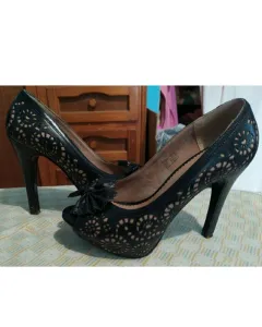 Hermosas zapatillas negras con palo de rosa, tacón #15, con plataforma, muy comodas.
