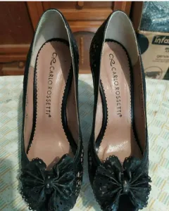 Zapatillas Carlo Rossetti. Hermosas zapatillas negras con palo de rosa, tacón #15, con plataforma, muy comodas.