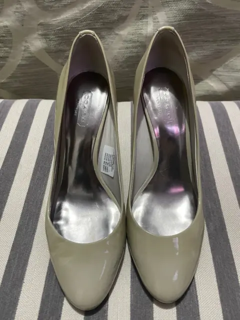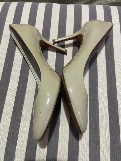 Lindas zapatillas en charol color gris , el tacón es súper cómodo tienen un pequeño herraje de la marca en la parte de atrás, solo las use un par de veces