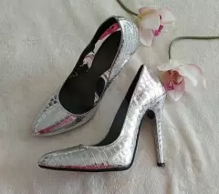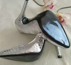 Zapatillas color plata. Bellisimas zapatillas cerradas color plateado muy brillante en material texturizado vinil