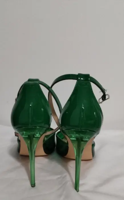 Zapatillas de tacón color verde esperada talla #4 MX u #8 US, son transparentes