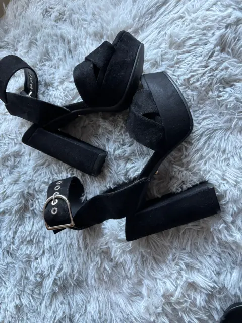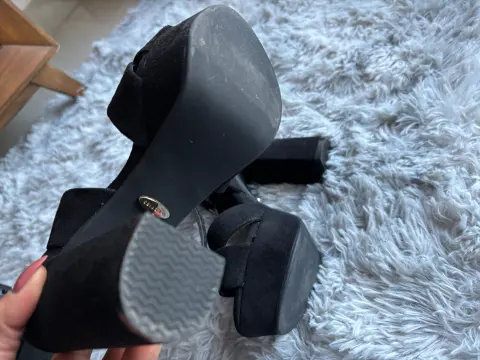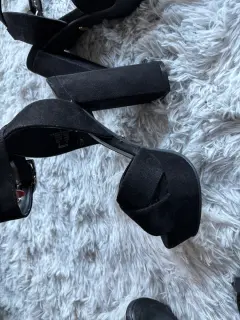 Lindas sandalias de tacón cómodo , tiene pulsera con una bonita hebilla . Son color negro , eleva tu outfit. Están en súper buenas condiciones solo los estrene.