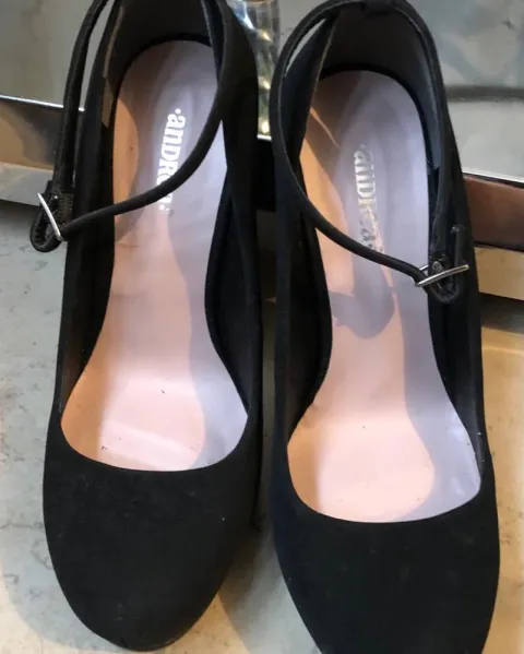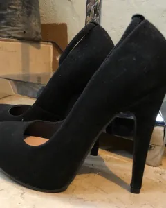 Zapatillas negras de gamuza, una puesta, altura del tacón 12 cm
