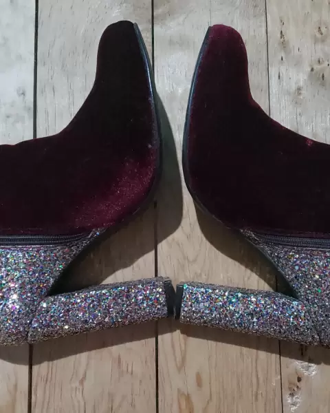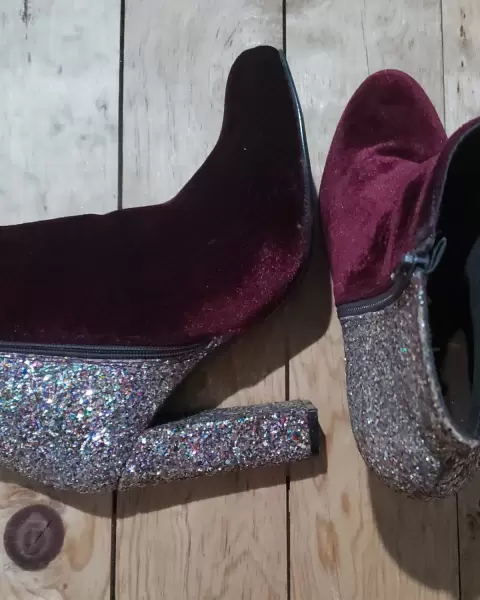 Estás zapatillas en particular me encantan, el color del terciopelo hace muy bonita convicción con los brillantes que tiene en el tacón. Son tacones altos, muy lindos y nuevos, sin pisar. 💅