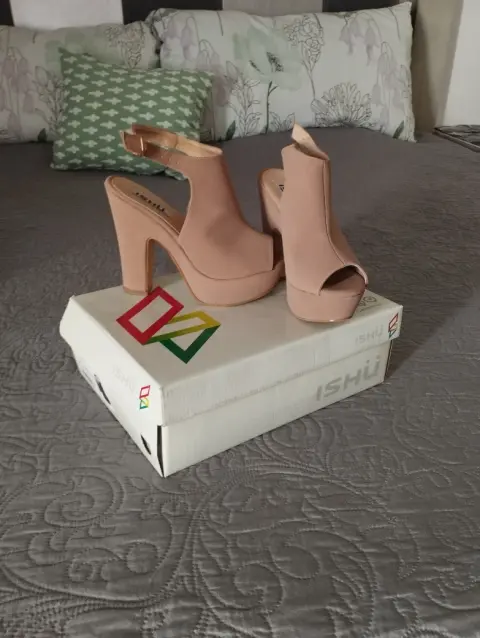Zapatillas de plataforma. Zapatillas #24 mexicano, rosa palo, descubiertas de punta y talón. Súper cómodas, cero detalles.