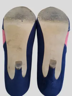 Zapatillas de plataforma color azul. Zapatillas de plataforma con gamusa, son del número 5 1/2 muy amplias para un pie ancho, estan usadas pero cuidadas, solo tiene un imperfecto en la orilla de color beige desgastada la tela, se puede notar en la foto 5, pero es el unico detalle que tiene. Se aceptan negociaciones. 😉