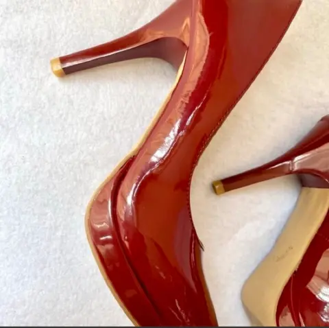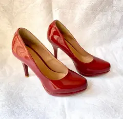 Hermosas zapatillas de plataforma color rojo quemado.Talla 4.5Marca Dorothy Gaynor.Están impecables por dentro y por fuera. Sólo se usaron una vez, muy poco tiempo.Alto de tacón 10 cm y 1.5 de plataforma.