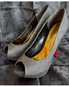 Zapatillas de punta abierta. Hermosas zapatillas talla 24.5, corte de piel en color negro/plata. En excelentes condiciones, un par de puestas. En vivo son mas hermosas, ideales para fiesta🥰Con plataforma interna de 3 cm que las hace muy comodas a pesar de sus 12.5 cm de alto.Te invito a visitar mi closet y si te gusta algo mas te armo un paquete 😉