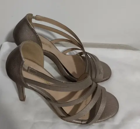 Zapatillas color dorado, de tela, tacón 8, talla #4 MX muy elegantes